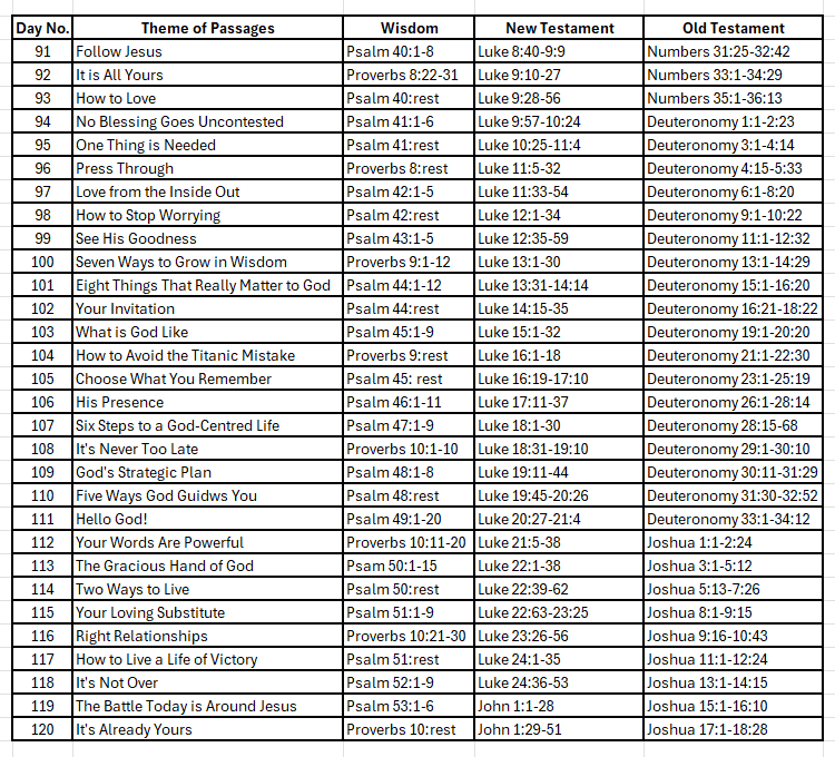If you would like to jump to any of the daily topics listed below please activate the following link and then alter the no. 91 to be the number of the topic of interest. – https://bible.alpha.org/en/classic/91/index.html
