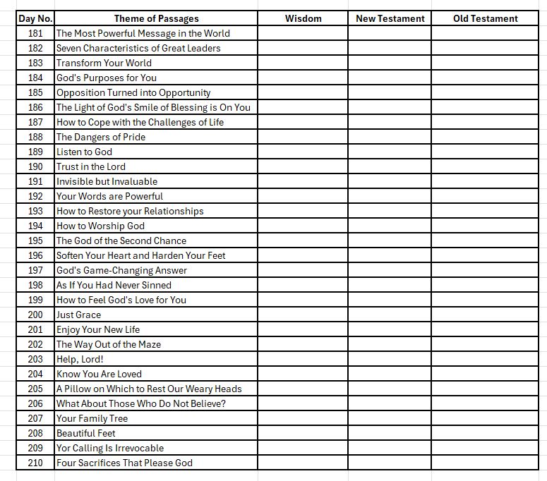 Themes covered by Nicki – Seventh of 12 sections of 30 days each. (12 months project)